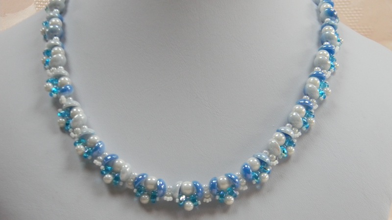 Collier en perles swarovski, perles rondes nacrées et cabochons